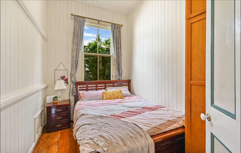 The room is 2. 2 x 3. 4 sqm. It can fit a single, double or queen bed but it is a smaller room so the layout would be dependent on how much space you want to utilise in the room. The room is currently unfurnished however, it can be furnished with a double bed, clothing rack and bedside table if furnishings are required. There is a fan in the room but no air-con and the room has a big window for lots of natural light. The rest of the house is furnished.